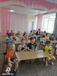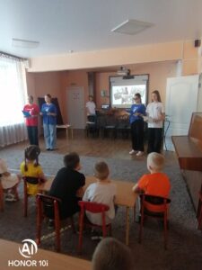 Учащиеся школы №72, совместно с руководителем “Движение первых” Анной Сергеевной, провели мероприятие в детском саду: рассказали о своей деятельности, провели мастер – класс по изготовлению значков “Первый”, весело и задорно организовали танцевальные игры.