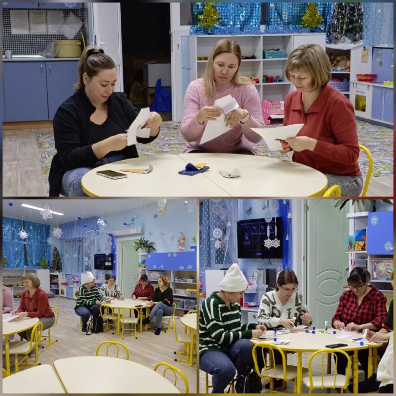В старшей группе №7 прошло родительское собрание в форме мастер -класса по изготовлению ажурных снежинок!