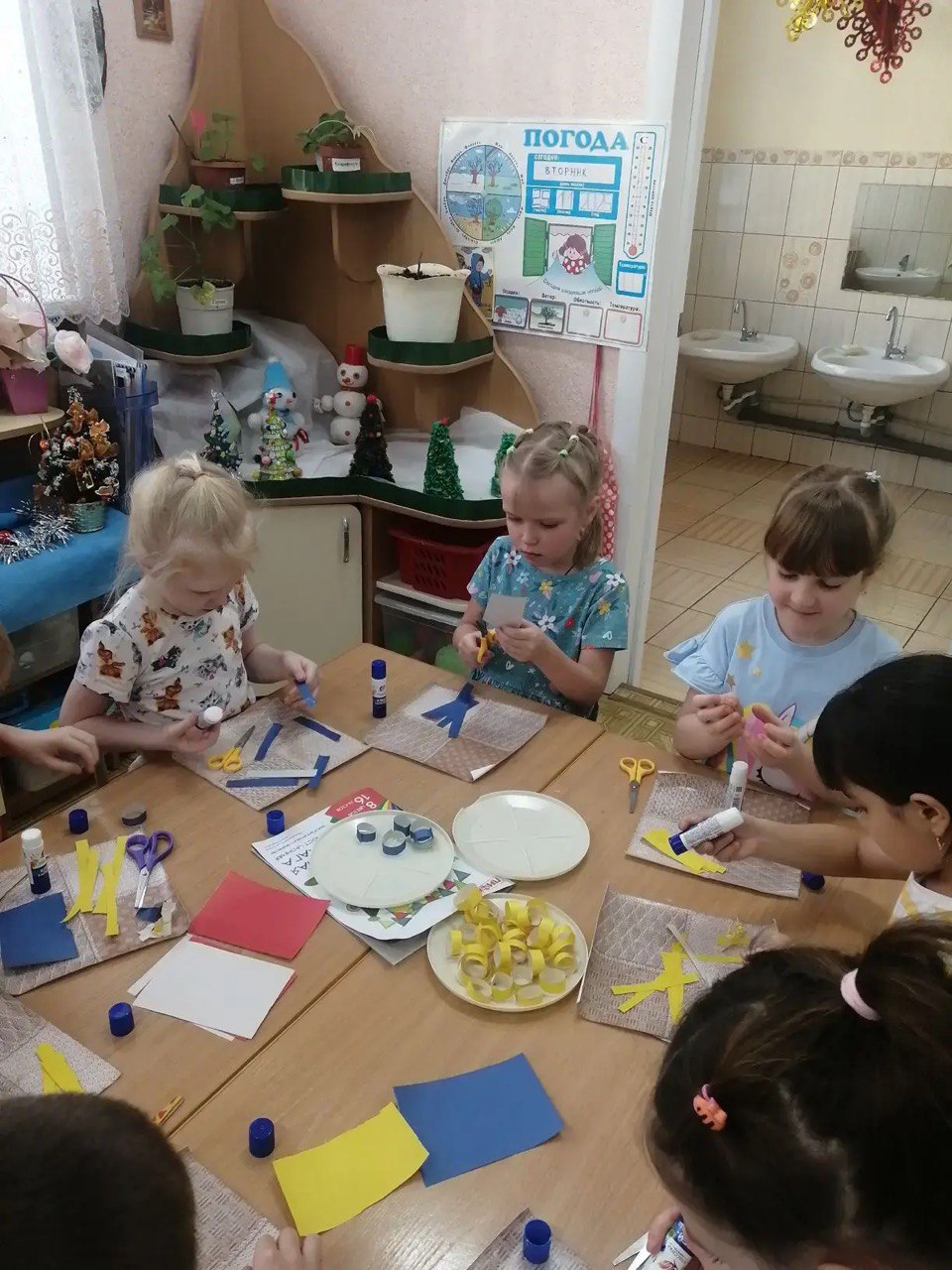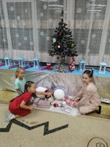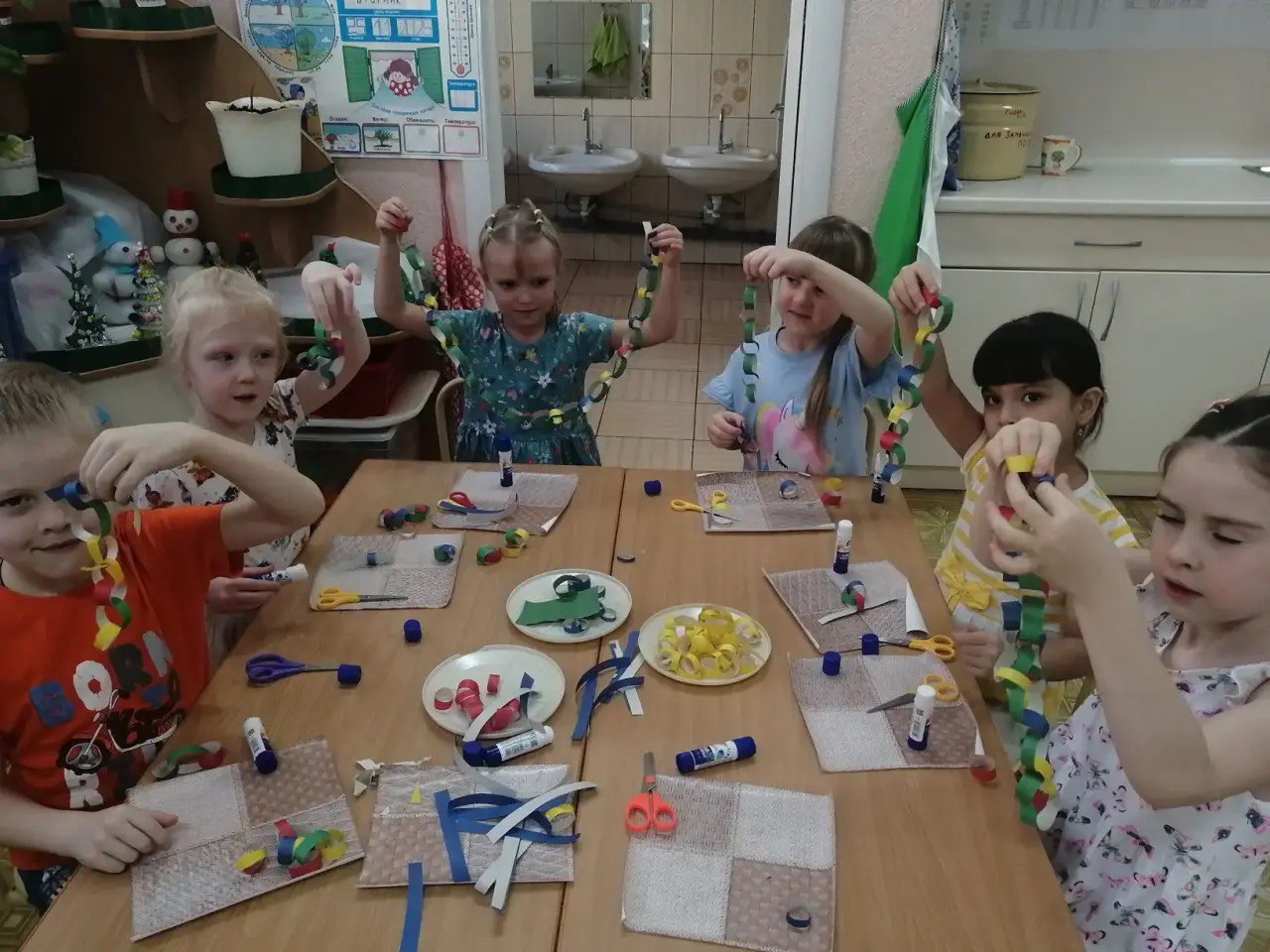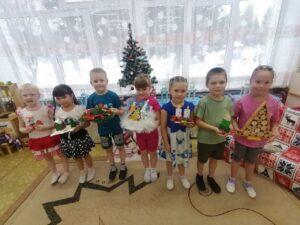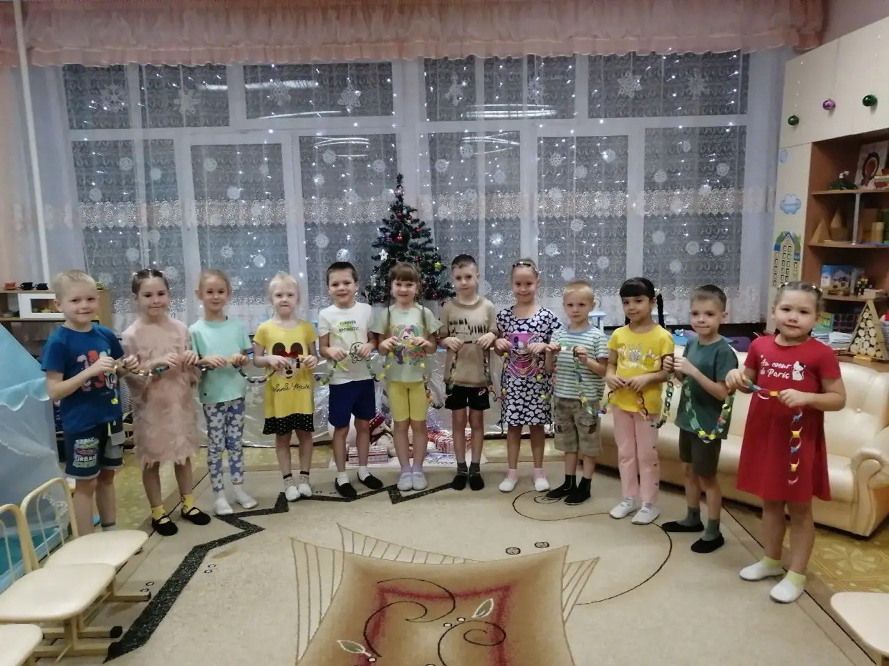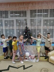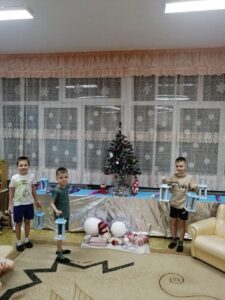 В группе 4, дети, чтобы приблизить Новый год, решили поучаствовать в украшении группы. Самостоятельно изготовили длинную гирлянду и развесили в кукольном уголке, нарядили елку и помогли нам украсить группу новогодними фонариками и хлопушками. Дети познакомились с традициями празднования Нового года в разных странах.