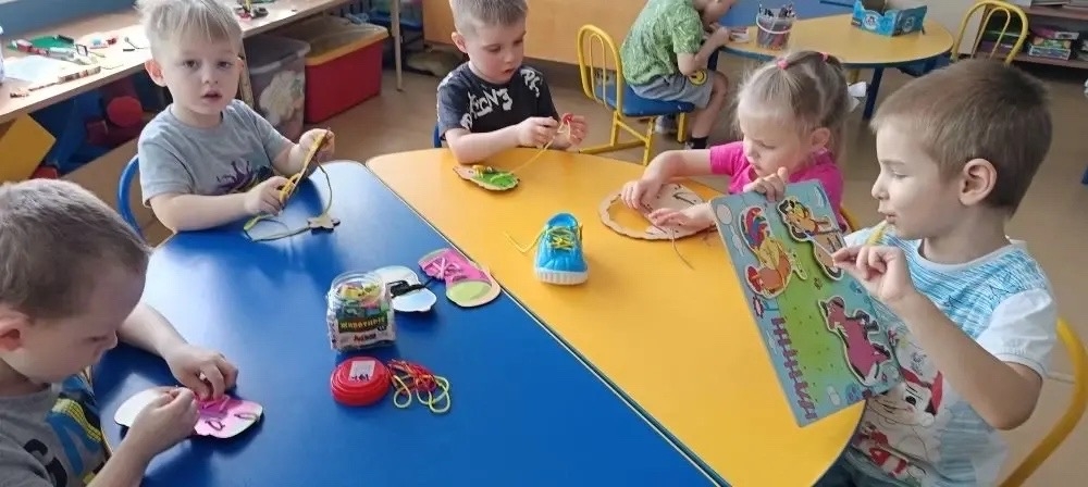 Дети группы №10 с интересом играют в дидактические игры, выполняют упражнения для развития мелкой моторики и артикуляции